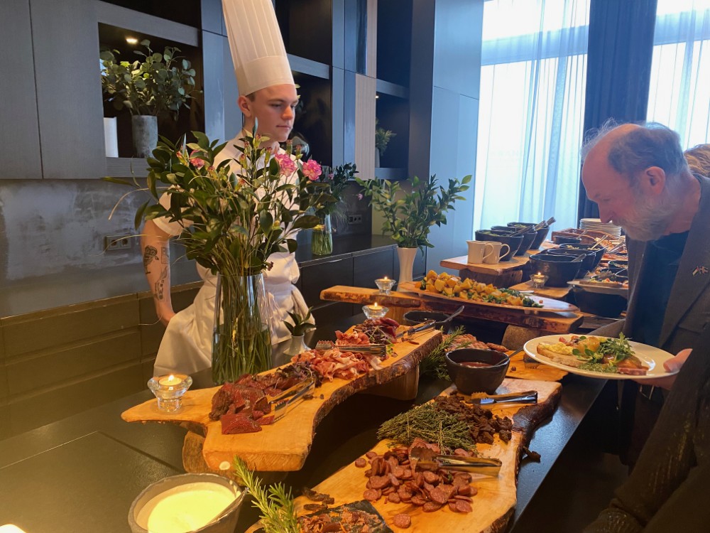 Þá var komið að glæsilegum hádegisverði (dögurði) og kaffi og kökum í eftirrétt.